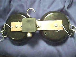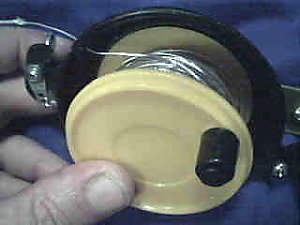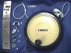 Theory: This design is an electrical 1/2 wavelength dipole antenna. The wire shorts out when inside the reel, so that it does not form an inductor. This means that the operating frequency is determined by how far the wires are pulled out and secured. The wires are labeled at 9 points along each wire for HF operation and the 6 meter VHF band. They are supported at the middle and the end of each wire. The Model PRA2 can be configured as horizontal or inverted "V" type. |